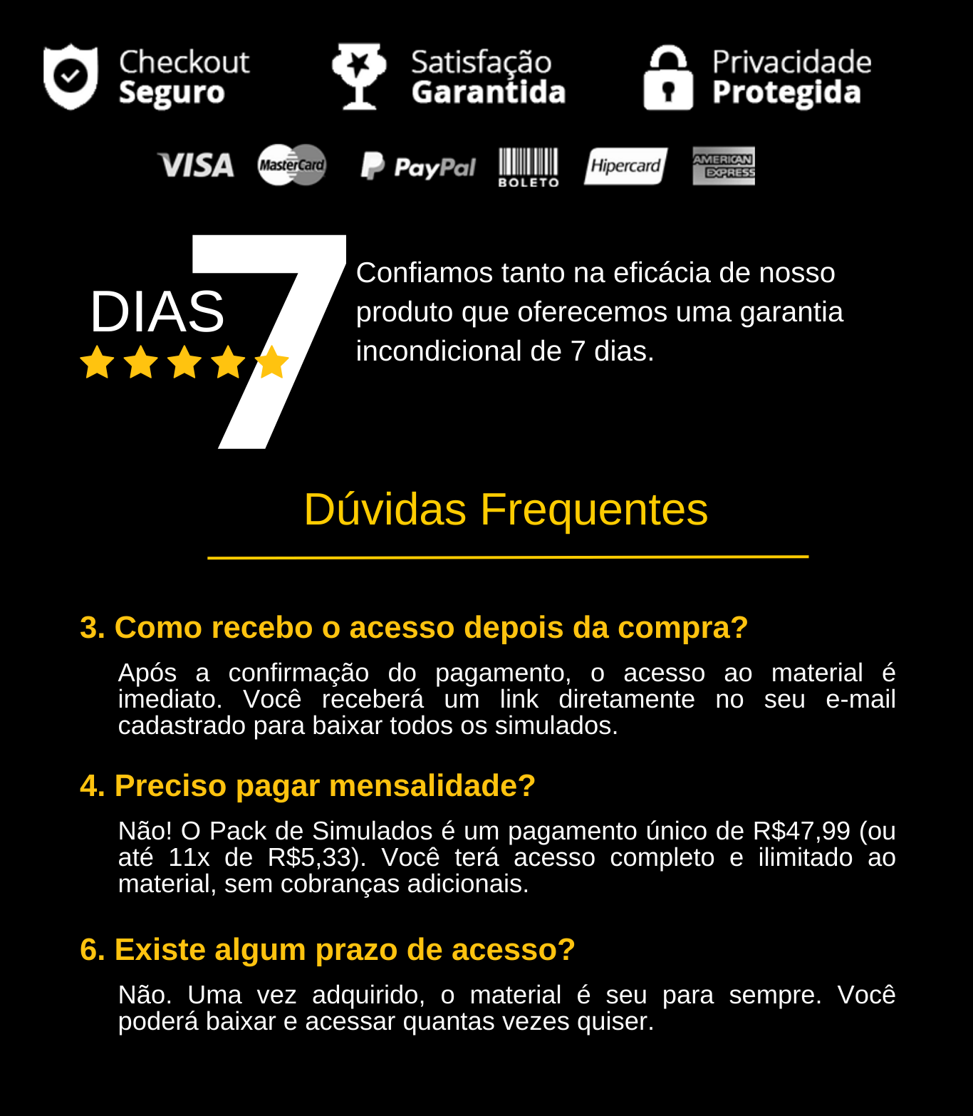 Ao clicar em “Receber pagamento”, declaro que (i) estou ciente de que a Pagar-me está processando este pagamento em nome de SIMULA PROVAS LTDA, atuando apenas como intermediadora da transação, não sendo responsável pelo conteúdo, oferta ou controle prévio do infoproduto; (ii) que li e concordo com os Termos de Uso, Termos de Pagamento e Política de Privacidade da plataforma.
